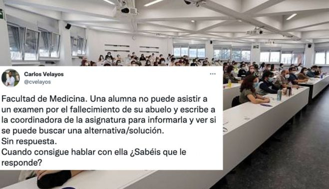 Llevas meses estudiando para los exámenes de la universidad y el día que tienes una de esas pruebas importantes, fallece tu abuelo. Intentas de todas las formas posibles buscar una alternativa, un cambio de fecha o una solución al asunto, pero la respuesta es negativa. Y demoledora, como ha comentado Carlos Velayos, médico especialista en medicina intensiva, que ha querido compartir en redes lo que le ha pasado a una alumna de la Facultad de Medicina.