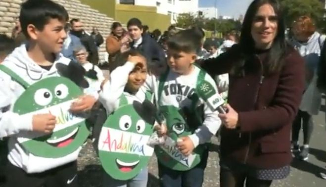 Una reportera de Andalucía Directo, el programa de Canal Sur, se ha quedado en shock tras escuchar la respuesta que un niño le ha dado durante una celebración con motivo del 28F. Los pequeños, ataviados con los colores de la bandera andaluza, se han detenido cuando la periodista se ha acercado a ellos para lanzarles una pregunta.