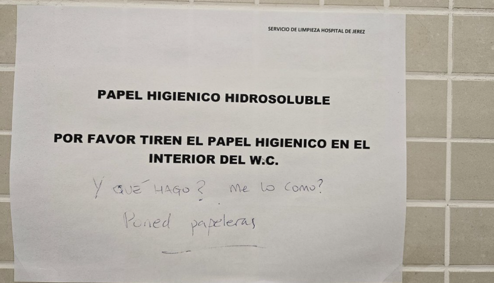 Un cartel puesto en un baño del Hospital de Jerez y compartido en redes por la escritora jerezana Margarita Lozano se ha convertido en viral en redes, con cerca de 300.000 visualizaciones.