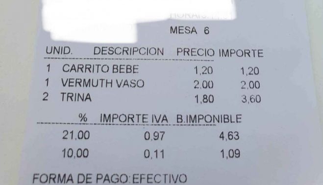 Además de la cantidad referida en concepto de "carrito de bebé", en la cuenta aparecen dos refrescos Trina por importe de 1,80 euros cada uno y un vaso de vermut al precio de dos euros. "Esto atenta contra los principios más básicos del derecho de consumo. Para poder facturar debe de existir un servicio efectivamente prestado, aquí no lo hay. Por otra parte, es una medida discriminatoria, equiparable a cobrar por entrar con silla de ruedas. Vamos, una barbaridad", comenta un usuario.