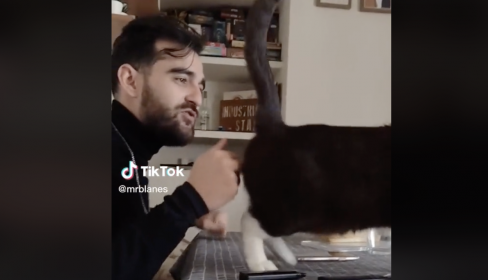"El gato flamenco, lo mejor que verás hoy", escribe Blanes a modo de presentación de un vídeo que acumula millones de reproducciones. En apenas 20 segundos se ve a Rigbi, el gato del actor, siguiendo el ritmo que le marca su dueño con sus patas traseras.