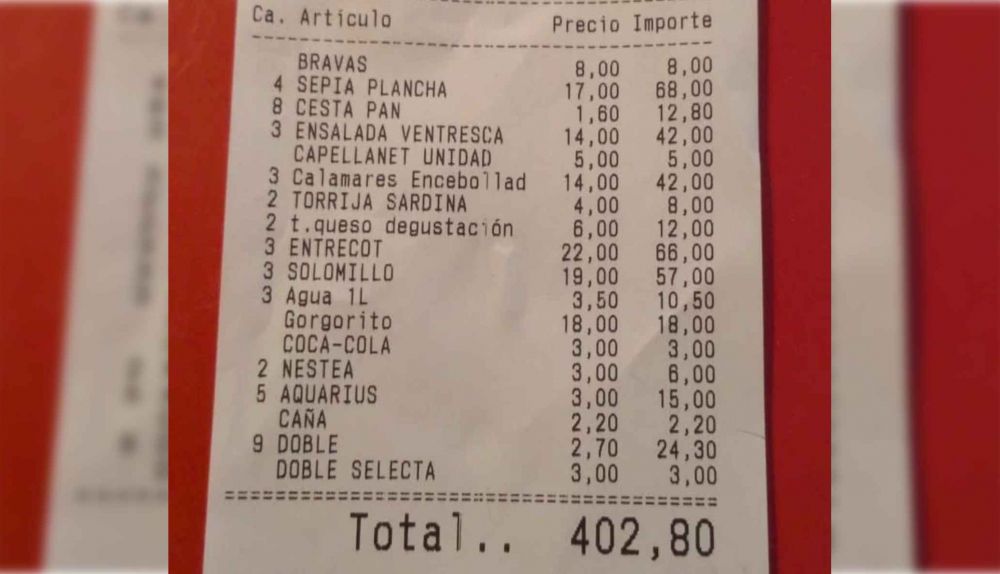 A 402,80 euros, para ser exactos, ascendía la cuenta impagada, pero no contentos con haber dejado esta cantidad sin abonar, uno de los comensales se atrevió incluso a dejar una reseña negativa al local en internet: "No hagáis caso a las reseñas, sitio pésimo, comida pésima y servicio pésimo. Uno de los peores sitios a los que he ido".
