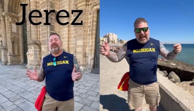 En esa ruta, este domingo subía un vídeo en Jerez de la Frontera. En apenas medio minuto, resumía Jerez no solo por el "sweet vino that dominates the world", el vino dulce que domina el mundo, sino también hablando de caballos y monumentos. "Tiene hasta un castillo", en referencia al Alcázar.