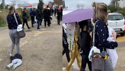 Con un niño en brazos y otro arrastrando agarrado de la pierna simulando una ‘rabieta’, el disfraz de la castellana ha sido todo un triunfo. Algunos usuarios han apuntado a que parece que lo hace de manera natural, “así que parece que algo de práctica tiene”.