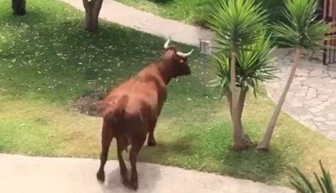 La vaca salió por la muerta metálica del complejo sin rumbo, suponiendo un peligro para los viandantes, entre los que se distingue algún que otro niño. La vaca podría haber embestido a alguien, pero afortunadamente, parece que, una vez que finalizó su paseo por la urbanización, se marchó sin molestar.