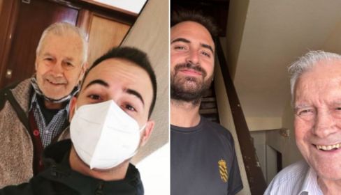 Óscar, un bombero forestal, ha compartido en redes la maravillosa costumbre que lleva poniendo en práctica desde el año 2021. Después de la pandemia, cada vez que sale a la calle junto a su abuelo, este joven se hace una foto en la escalera para inmortalizar el momento.