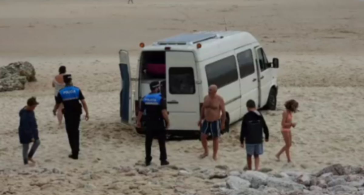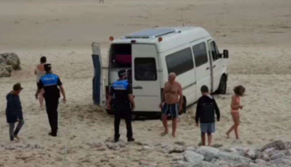 Turistas franceses aparcan su furgoneta en mitad de la playa