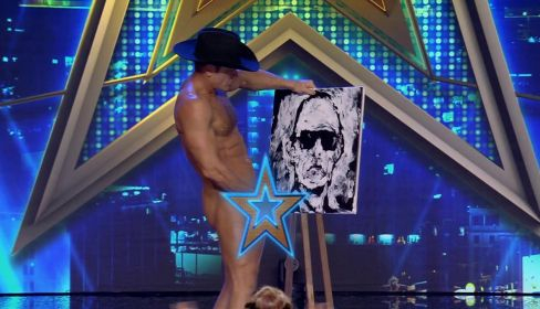 El espectáculo comienza realmente cuando al iniciarse el show no coge utensilios de pintura, sino que comienza a desnudarse. Este paso dejó al público y al propio jurado boquiabierto, pero nada comparable a lo que sucedería después. Las caras de los allí presentes empezaban a intuir lo que allí sucedería. Desde la realización del programa, lógicamente, se colocó una estrellita para tapar las partes íntimas de este canadiense.