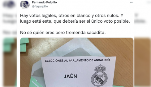“Hay votos legales, otros en blanco y otros nulos. Y luego está este, que debería ser el único voto posible”, comentaba un usuario de Twitter al encontrarse este voto en el recuento. El ciudadano hizo su propia lista y presentó su propuesta de con la alineación completa del Real Madrid, los mismos que han ganado la Champions y la Liga este años.