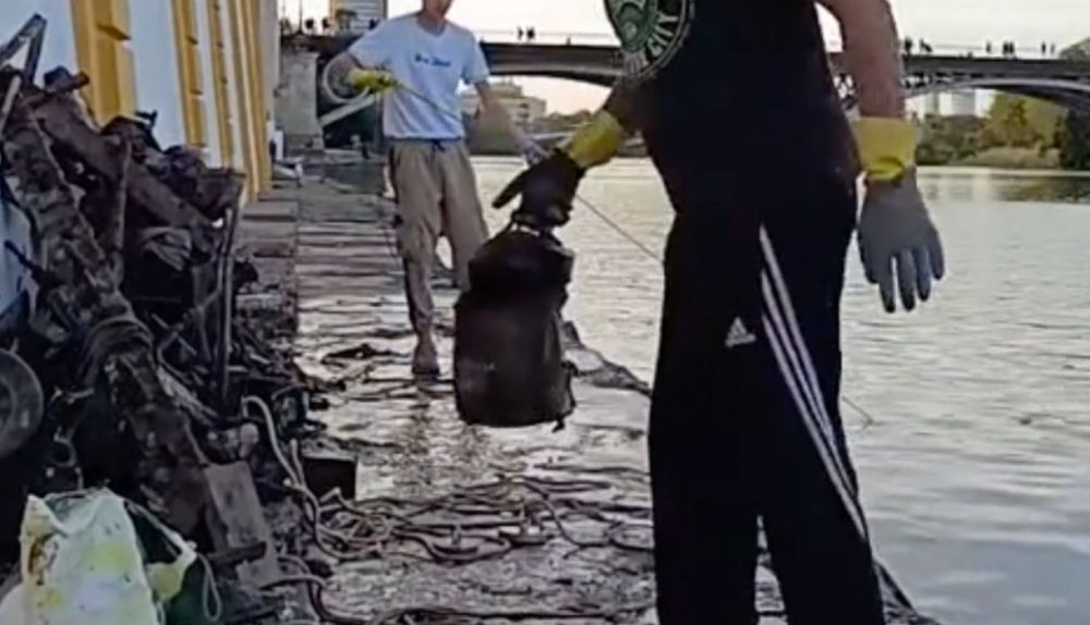Salvador Guerrero es un sevillano que movido por la curiosidad va habitualmente a la zapata de la calle Betis, justo abajo del Puente de Triana, para sacar con un imán con un gancho objetos que la gente tira al río Guadalquivir.