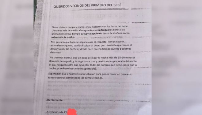 Los llantos de un bebé han provocado un conflicto en un vecindario de Cataluña. A una familia le han dejado una carta en la puerta de su casa quejándose de los llantos de su bebé.