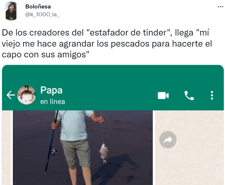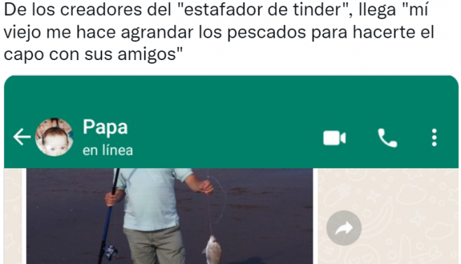 “De los creadores del "estafador de tinder", llega "mí viejo me hace agrandar los pescados para hacerte el capo con sus amigos"”, escribía en Twitter.