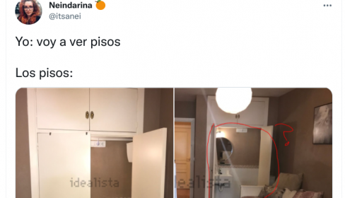 Alquilar un piso hoy en día no es nada fácil. A veces, los anuncios de conocidas webs como Idealista resultan de los más sorprendentes. Es lo que le ha sucedido a una usuaria de Twitter, @itsanei, que no podía creer lo que veía.