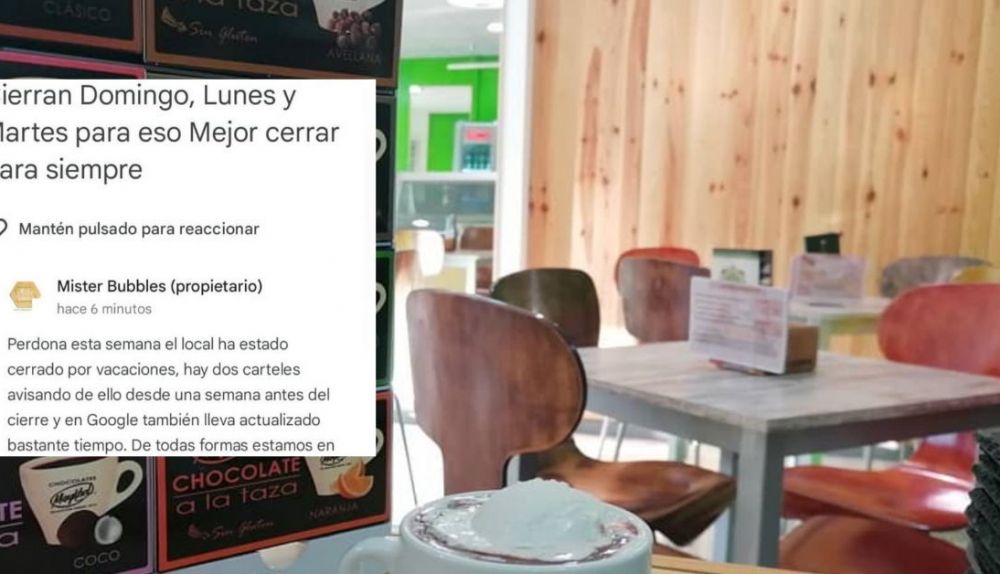 Ante esto, el propietario del restaurante Mister Bubbles, no dudaba en responder: “Perdona, esta semana el local ha estado cerrado por vacaciones, hay dos carteles avisando de ello desde una semana antes del cierre y en Google también lleva actualizado bastante tiempo. De todas formas, estamos en todo nuestro derecho de cerrar cuando nos dé la realísima gana”.