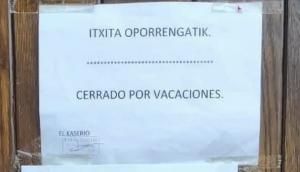 “Gente ofendiéndose porque tengan vacaciones en hostelería”, publicaba junto a una foto en la que se puede ver que, en la puerta de un establecimiento, los dueños han colocado un cartel en el que se puede leer que están cerrados por vacaciones, también escrito en euskera.