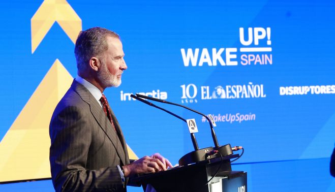 El rey Felipe VI ha reaparecido este lunes en un acto público. El monarca, en concreto, ha participado en la inauguración la quinta edición del foro 'Wake Up, Spain!', donde ha defendido este lunes que es "inaplazable" el debate sobre el refuerzo de las capacidades en materia de seguridad y defensa en Europa en un momento en que el multilateralismo está en juego y se corre el riesgo de una vuelta atrás "a las zonas de influencia" y el "mundo de las relaciones de poder".