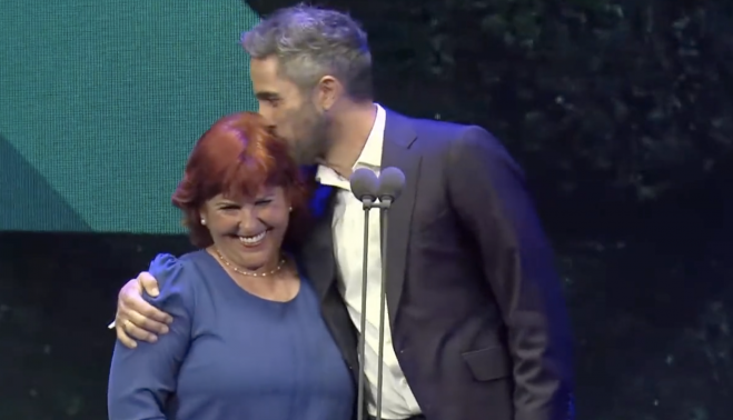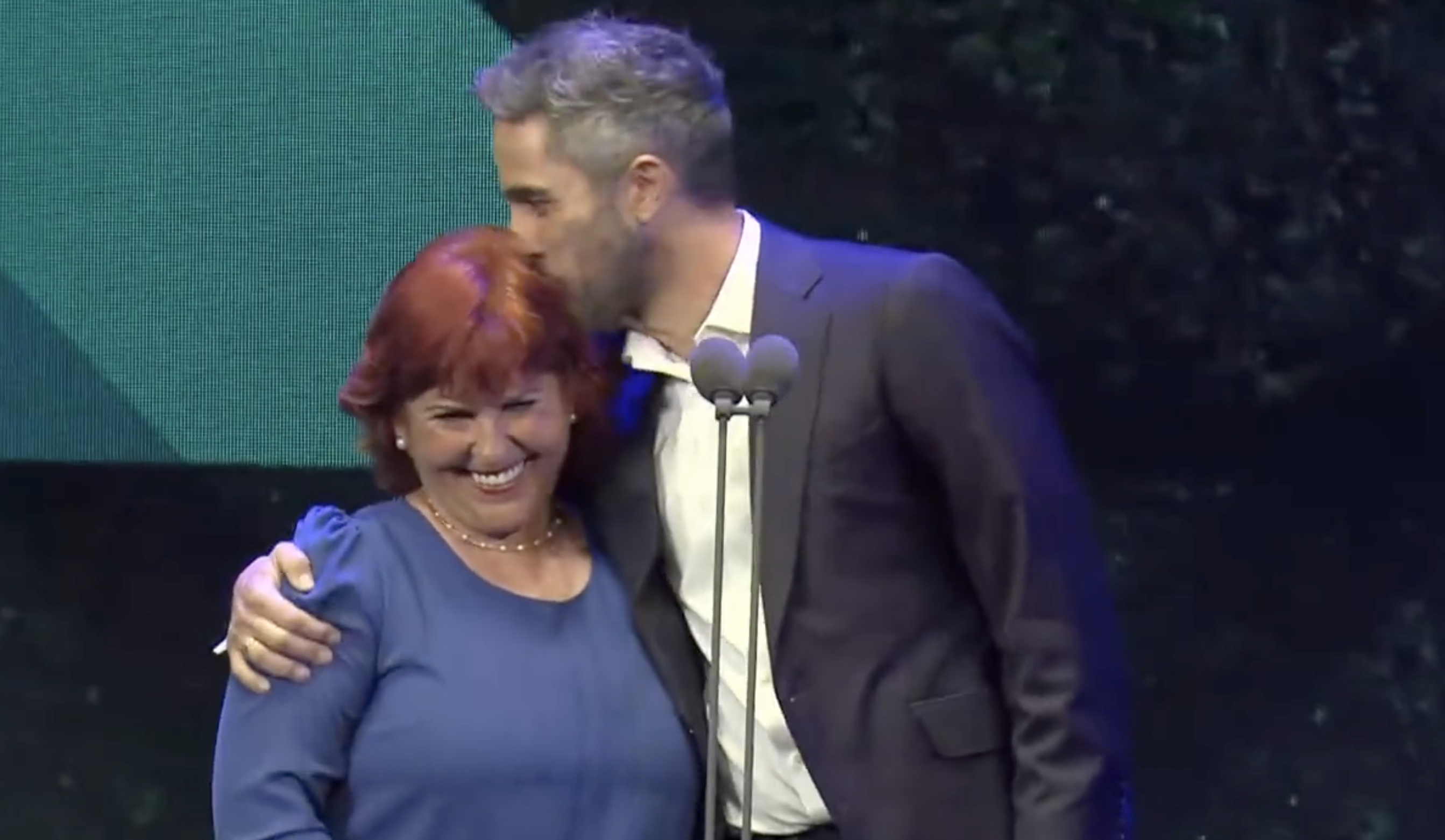 En su discurso, también se ha acordado de los primeros jefes que confiaron en él, de su mujer, de sus hijos Lola y Leo, de la ayuda de la familia que hace posible la conciliación familiar y, por último, de sus padres, con especial recuerdo para su padre fallecido hace dos años. Mercedes, madre del presentador, subía al escenario para compartir el premio con su hijo, quien le ha pedido que "quite la foto de comunión de hace 35 años que preside la mesa de caoba de la casa y que coloque, en su lugar, este reconocimiento".