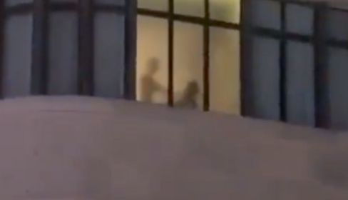 En el baño, sin la cortina echada –bien por despiste o por las prisas del momento–, una pareja mantenía relaciones sexuales sin percatarse de que sus siluetas se veían desde el exterior.