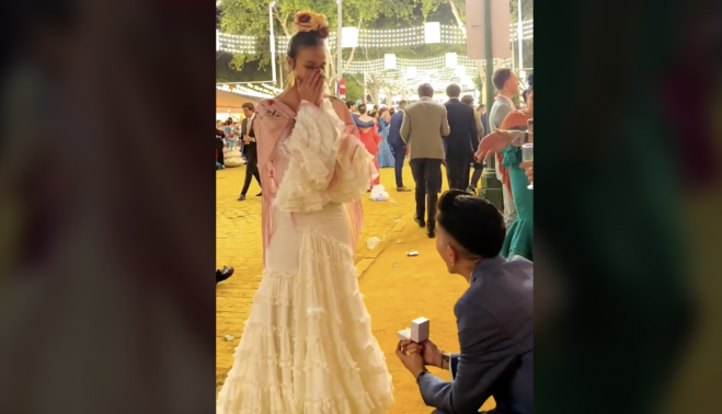 La Feria de Abril de Sevilla deja momentos de todos los colores en redes sociales. No todo van a ser papas gordas y bailes imposibles en las casetas. También hay escenas que han generado muchos likes, como la pedida de matrimonio que tuvo lugar en pleno Real.