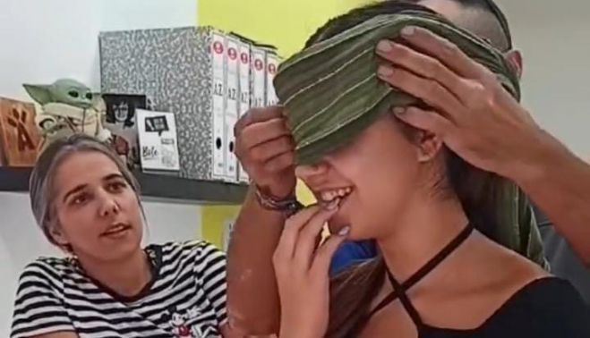 Como se observa en el vídeo compartido en redes sociales, José tapa los ojos de su hija y la lleva frente a la pantalla donde le muestra el diseño del tatuaje: "Mi reina".