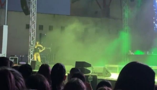 El Auditorio de la Alameda contempló como de repente algún espectador empezó a lanzar vasos, bolígrafos y mecheros. Uno de estos objeto acabó impactando en la cara de la artista que declaró, "llevo ya unos cuantos años de trote y no me ha pasado nunca, no sé a quién han dejado entrar".