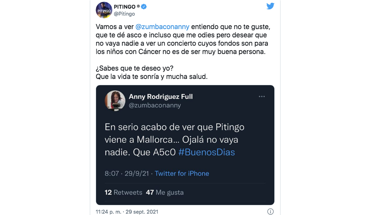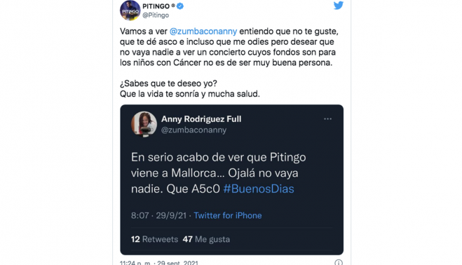 Tremendo ha sido el zasca de Pitingo a una tuitera que pedía en redes que nadie fuera al concierto que el cantante va a ofrecer en Palma de Mallorca el próximo 16 de octubre.
