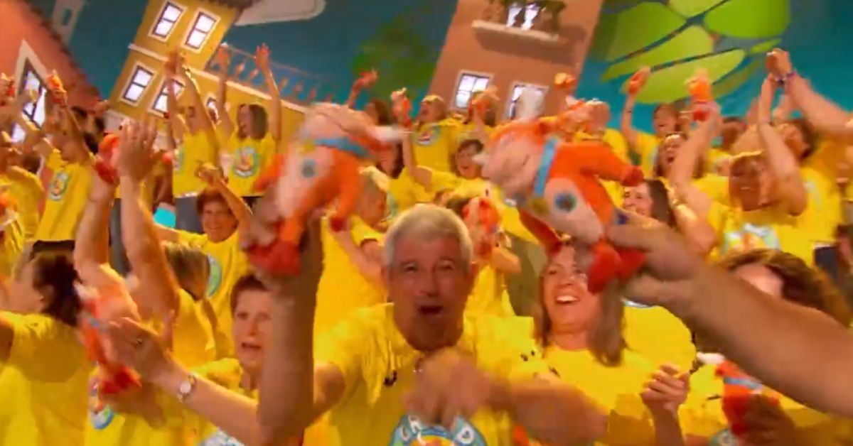Familias con niñxs, el pueblo en la calle, contratación de una pantalla para ver el programa, gente ilusionada...