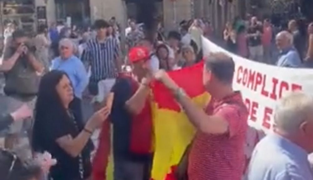 No obstante, lo más curioso de la escena es que estos grupos acabaron enfrentándose entre ellos por una pancarta en la que se mencionaba al rey Felipe VI. "Felipe VI es cómplice del golpe de Estado", se podía leer. Una frase que no ha gustado a otros manifestantes. Algunos han intentado taparla con banderas de España. Otros, directamente se han enfrentado a las personas que la portaban.