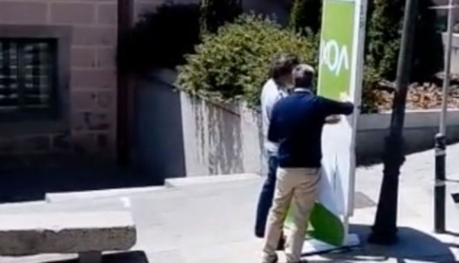 La tradicional pegada de carteles de estos días previos a las elecciones del próximo 28M se le ha atragantado un poco a dos simpatizantes de VOX.