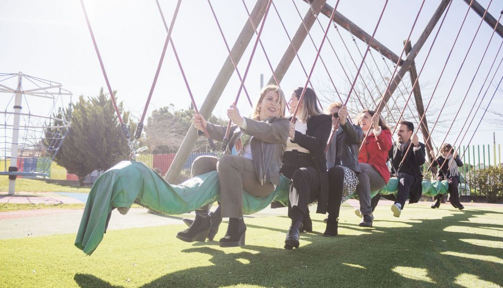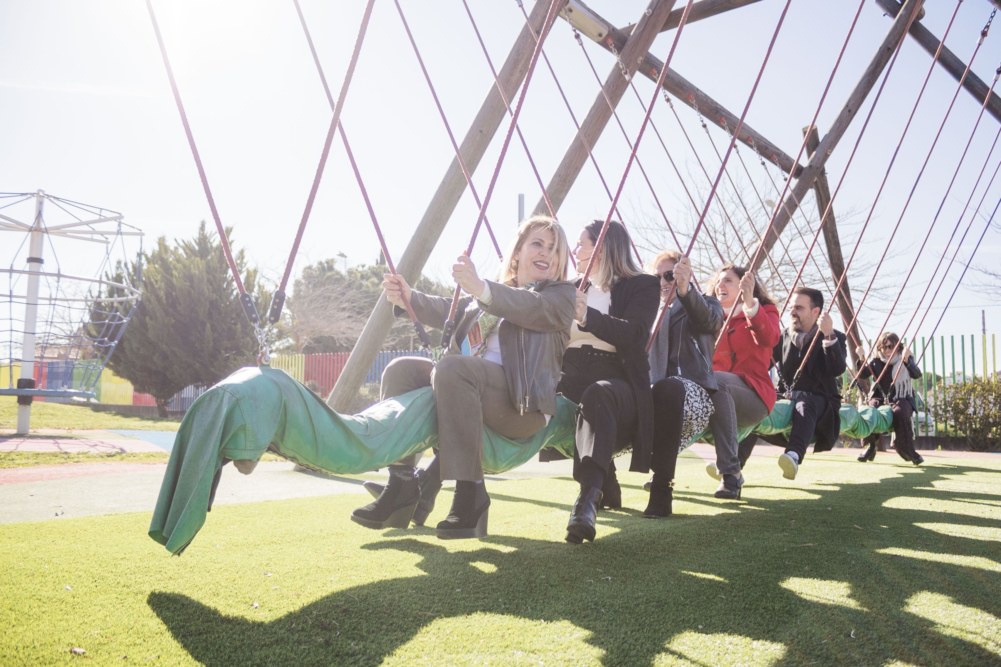 - Juegos de movimiento: columpio gigante de cuerda y carrusel gigante de cuerda giratorio.