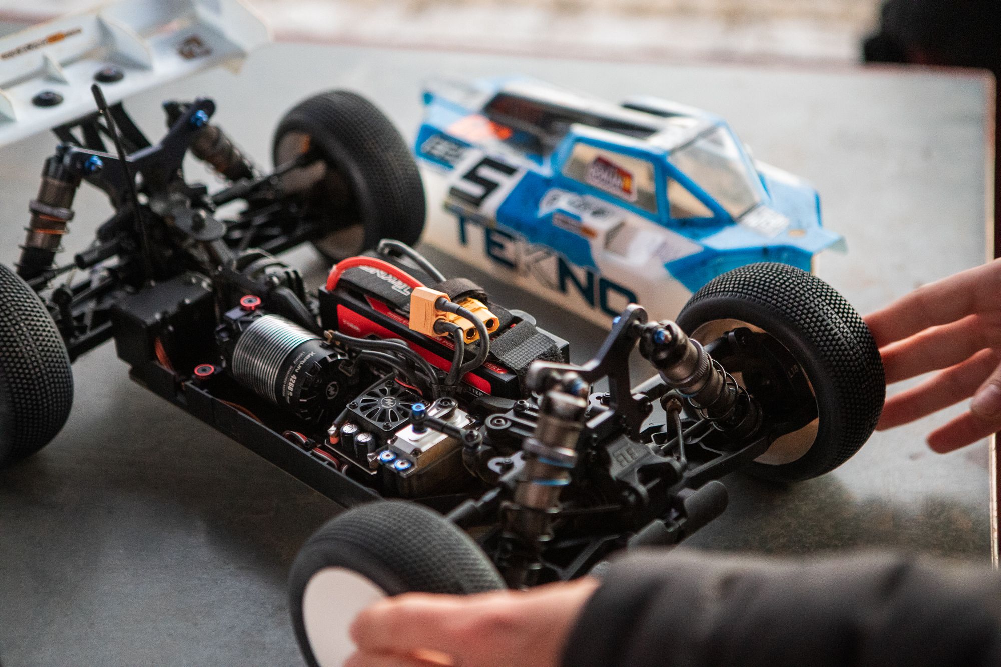 En la mesa reposan dos coches teledirigidos eléctricos -también los hay de gasolina-, un 4x4 de escala 1:8 y otro de tracción trasera. El primero es “la categoría reina” en estos momentos.