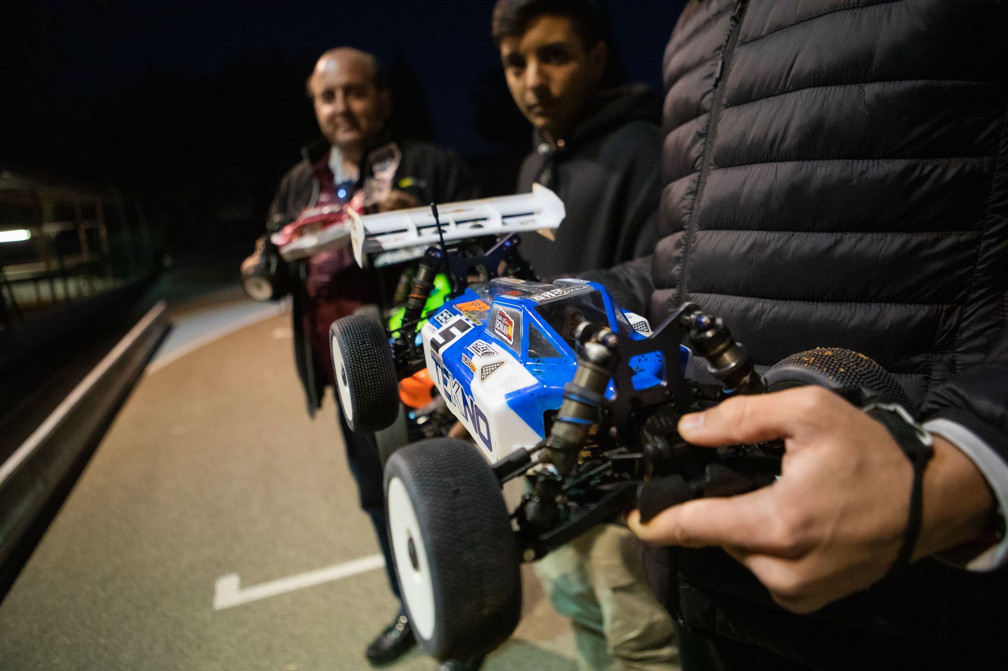 Bajo la luz de los focos, sueltan sus coches en la pista y accionan el mando mientras un sonido que han escuchado mil veces les acompaña en su trayecto. El club Los Volteretas sigue organizando pruebas y reuniendo a aficionados de esta práctica que se extiende a todo el planeta.