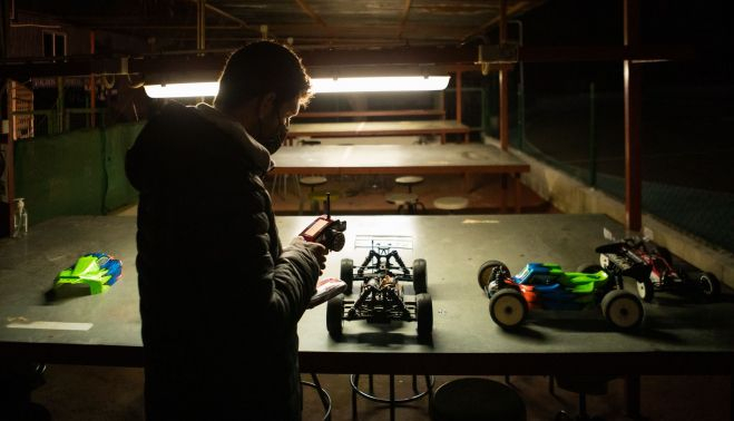 Una tarde cualquiera, unidos por una misma afición, entran en el circuito indoor que ofrecen las instalaciones. Una sala ideal para los días de lluvia. “Estos son como los Scalextric, como la palma de mi mano, es una de las escalas más rápidas del radiocontrol, tarda 6 segundos en dar una vuelta”, cuenta Manuel, al que le gusta la dirección de carreras.
