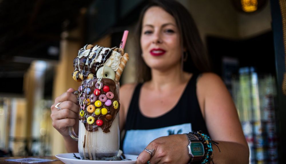 La terraza de La palapa es un punto de encuentro para “gente de todo tipo” y también para mascotas. A la dueña le encanta que sus clientes se sienten con ellas. Además, por las mesas han pasado generaciones de familias, parejas, colegas y una larga lista de curiosos –“los que se han divorciado, los que vienen con nuevas parejas”- que no han querido perderse esta propuesta con sabor dulce. “10 años son 10 años”, sonríe la jerezana satisfecha. Por los llamados freakshakes no pasan los años, a los batidos extremos tamaño XXL le quedan aun muchas penas que alegrar.