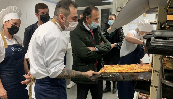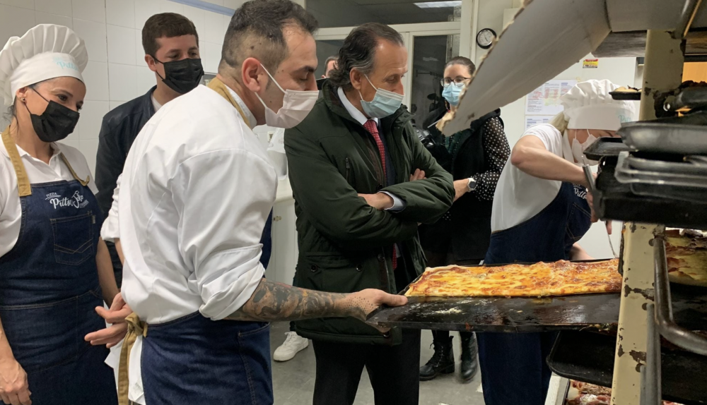 “Nos hace ilusión visitar este nuevo establecimiento junto a la Plaza Mayor, porque se trata de un restaurante diferente dirigido por Jesús y Eva, que nos ofrece una pastelería tradicional y una pizzería, donde podemos adquirir pizzas en porciones”, ha manifestado el alcalde, quien ha resaltado que “es muy atractivo para la gente joven, que se ve en las grandes ciudades y en donde se puede adquirir porciones de pizzas para comer por la calle”. “Además, se sitúa en un sitio como las CuatroEsquinas, lo cual es muy agradecido por los jóvenes, que se reúnen en la Plaza Mayor durante los fines de semana”, ha comentado.