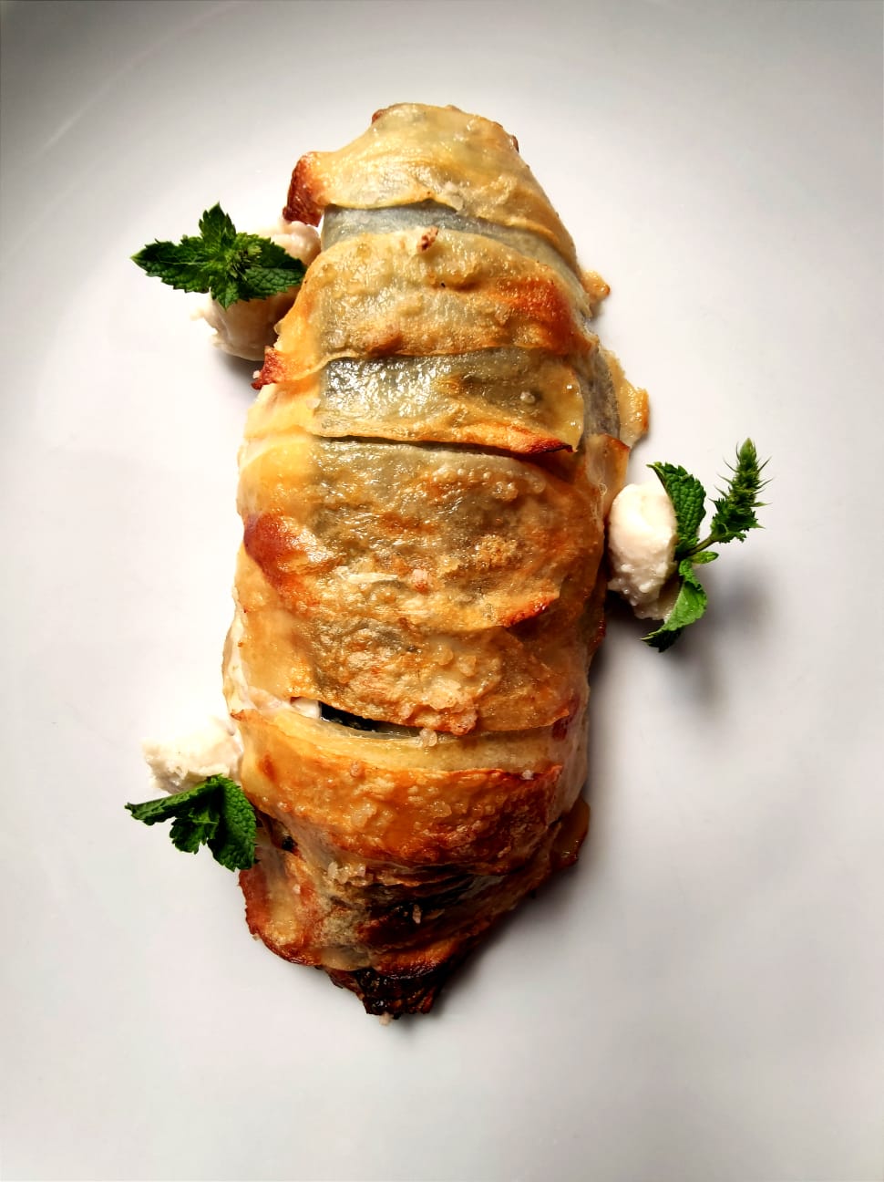 Entre los platos más innovadoras de Alboronía se encuentra la berenjena —también alcachofa cuando es temporada— con crema de yogur ahumada, salsa teriyaki y huevo marinado, el atún rojo y harira, la caballa crocante, con ajo almirez —parecido al ajoblanco y típico del altiplano granadino— y puerros asados o el hot dog marroquí de atún de rojo de almadraba. "El perrito caliente va cocido y a la plancha en un pan de brioche que también hacemos nosotros. Luego lo acompañamos con dos salsas: yogur y hierbabuena, y harissa. Jugamos emulando el hot dog clásico pero con atún y sin kétchup ni mostaza", explica el hostelero.