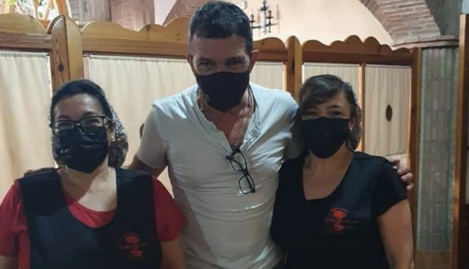 Loli y Esther Gómez Calvillo, dueñas del restaurante Cádiz El Chico, han inmortalizado el momento dando fe de la simpatía de Banderas.