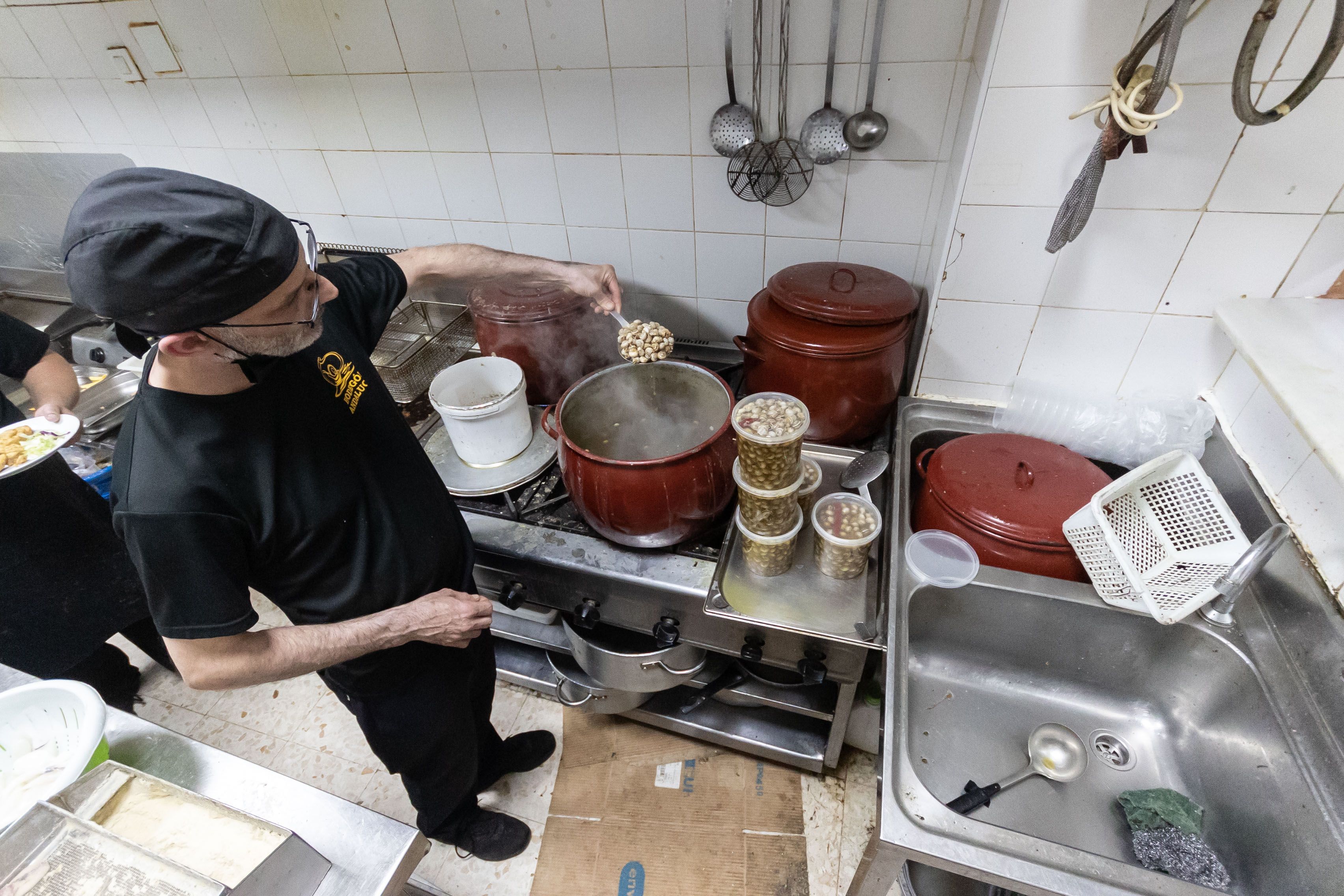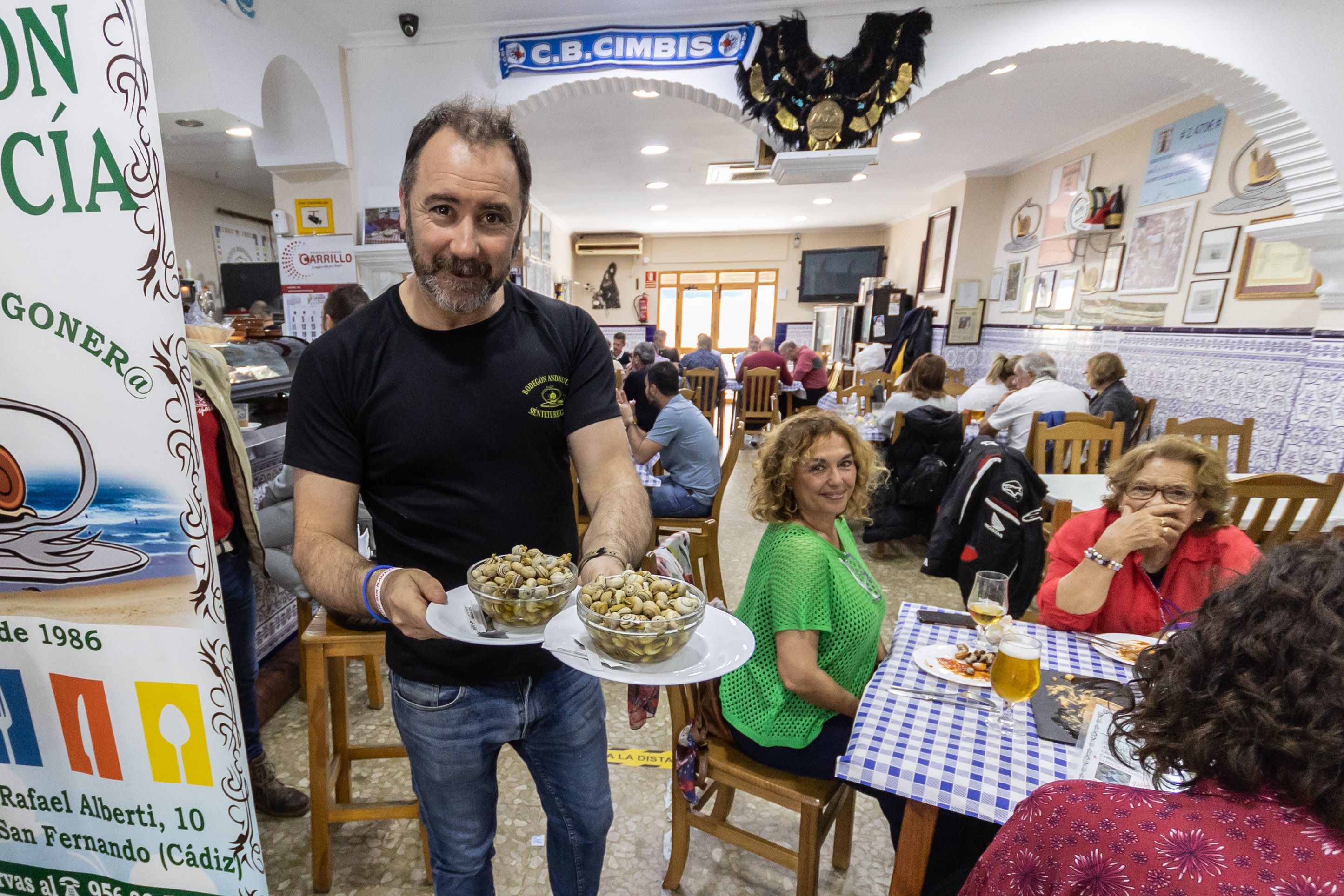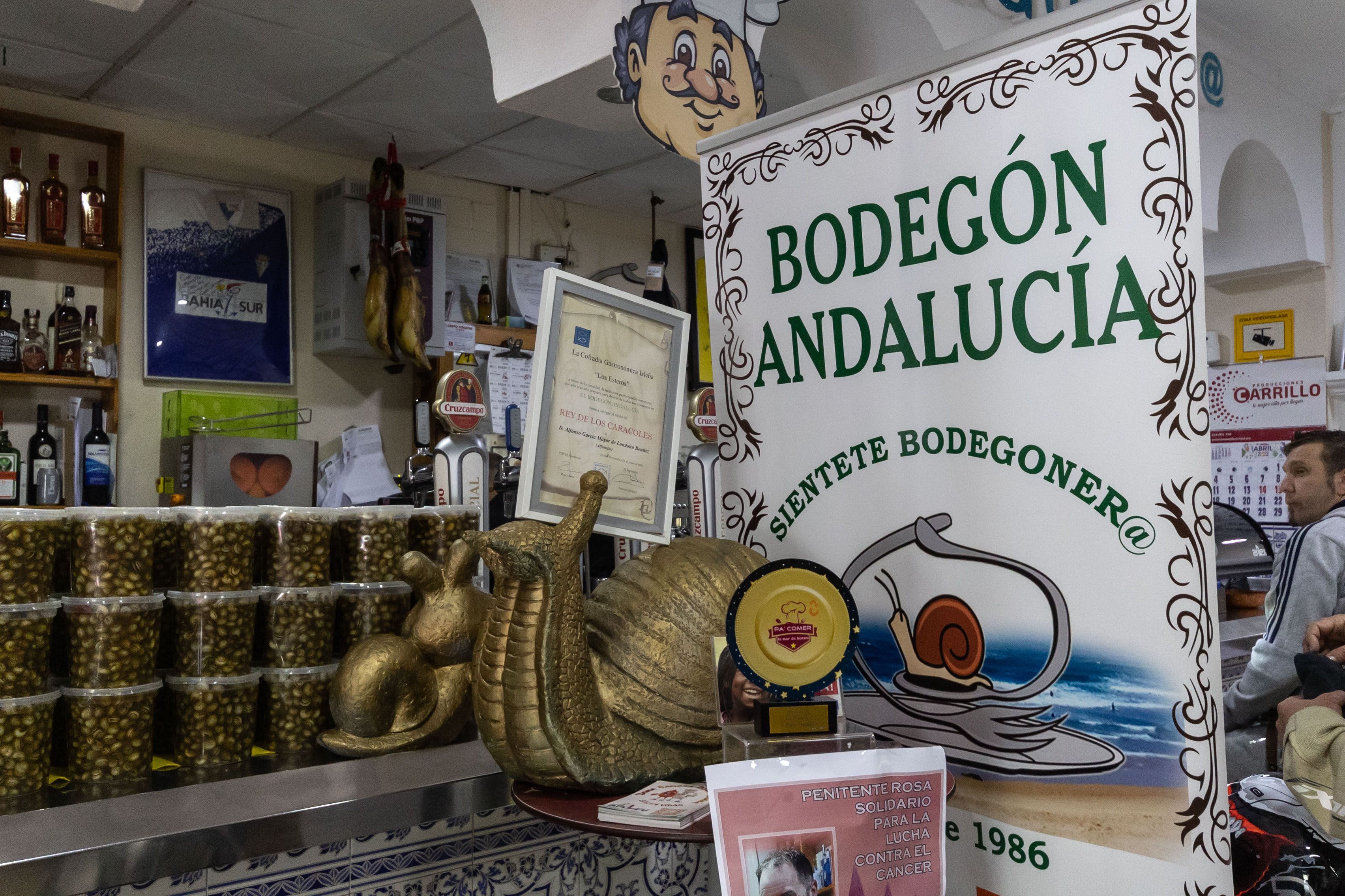 Palillo de dientes en una mano y un caracol en la otra. Esta escena es habitual en un rincón de San Fernando en los meses de abril, mayo y junio. Los vasos salen a tutiplén de una olla enorme que no descansa en todo el día. La tapa que alegra estómagos en tiempos de ferias es la protagonista de las mesas en el Bodegón Andalucía, un establecimiento que no hace falta presentar a los isleños.