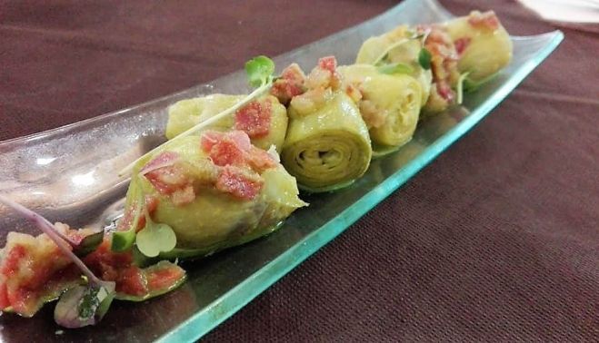 Como las alcachofas rehogadas y salteadas con jamón que ellos mismos cultivan y cuyo corazón tierno no tiene que envidiar nada a las que solemos encontrar preparadas en tantos restaurantes.