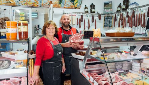 “El secreto es que todas las carnes son de aquí y hacemos las cosas nosotros, la gente está harta de las carnes envasadas y les gusta más una carnicería tradicional”, añade. “Le compro las terneras a un ganadero de Patría, que tiene la vaca retinta y la vaca de la Janda, que es una raza mezcla de padre retinto y madre limusina. Hacemos todo desde este lugar: los pinchitos, la manteca, las hamburguesas, las albóndigas, la morcilla…”, relata Luisa. “No compramos despieces, todo lo que tenemos son piezas enteras que preparamos aquí”.