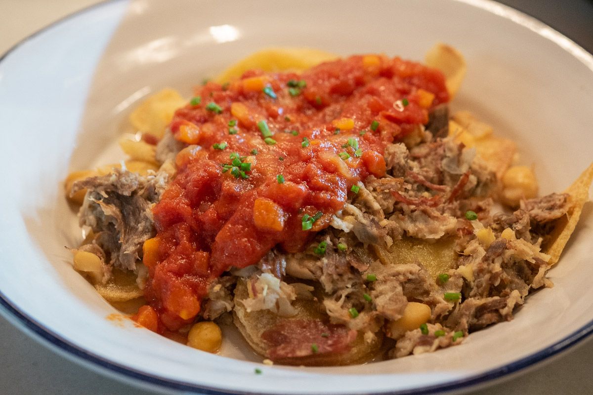 La carta apuesta “fuerte” por el bacalao, con distintas recetas, y también por el marisco, las conservas, embutidos y quesos seleccionados por los propietarios de Casa Angelita. “Hemos probado los productos del primero al último y hemos dicho: este sí lo queremos tener”, señala Raúl Cueto a lavozdelsur.es, quien cuenta que la elaboración de la carta les ha supuesto muchos viajes a localidades como Santoña, Caviedes, Zamora, Plasencia, Lodosa o Tolosa, pero también a otras más cercanas como El Bosque para “encontrar algo que nos guste y hacer lo posible por tenerlo”.