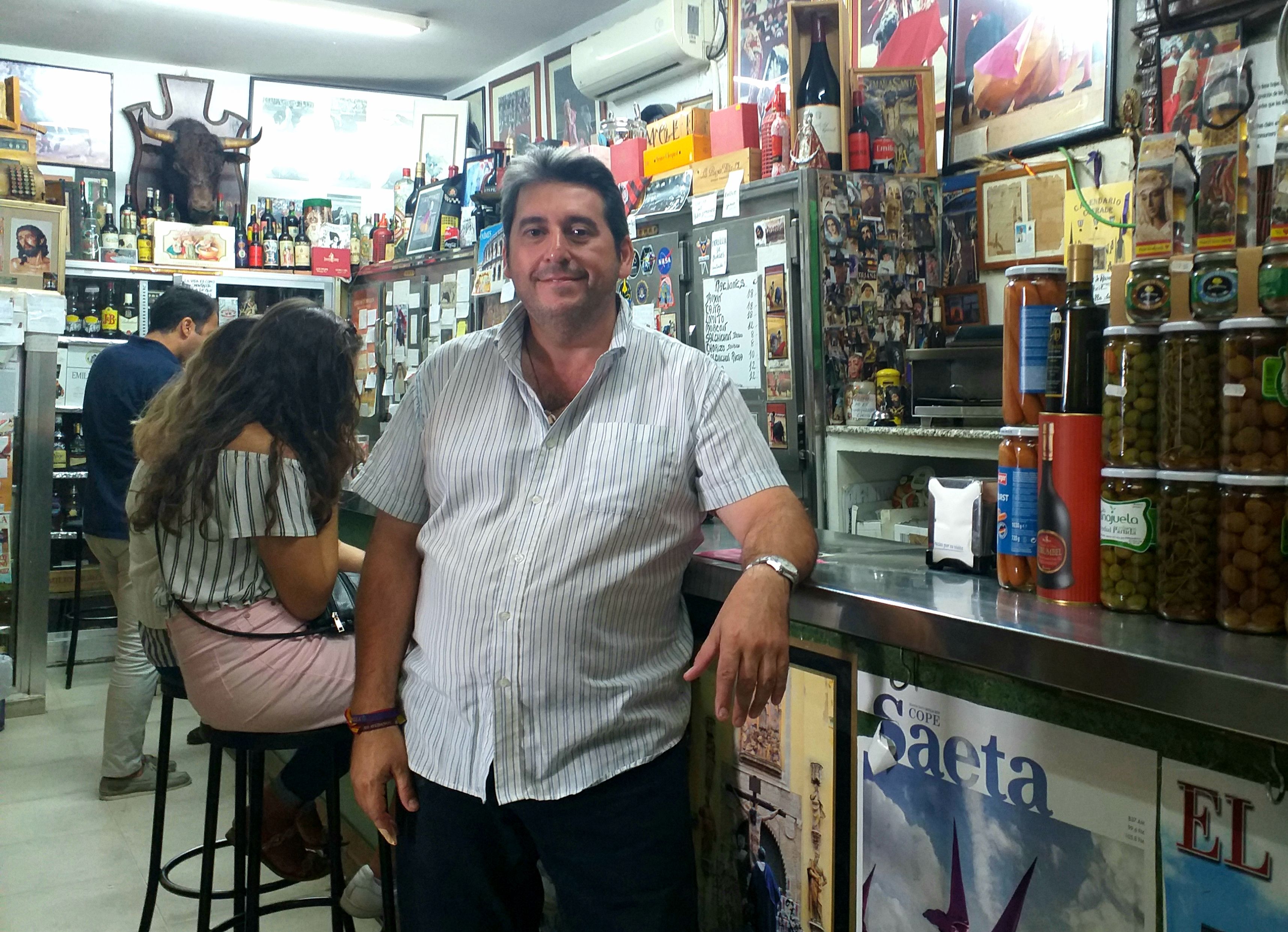 Entre el batiburrillo decorativo llaman la atención los pequeños papeles escritos a mano que salpican aquí y allá: frases, reflexiones y aforismos, obra de Emilio, que lleva en la sangre el venenillo literario, para delicia de los clientes que saben apreciarlo tanto como la copa y la tapa. No en vano, su padre, también Emilio Vara, fue redactor en el diario vespertino Sevilla, que fundó la prensa del Movimiento en 1942. “A mí me gusta escribir, pero no me gusta el intrusismo, porque yo no soy escritor ni periodista”.