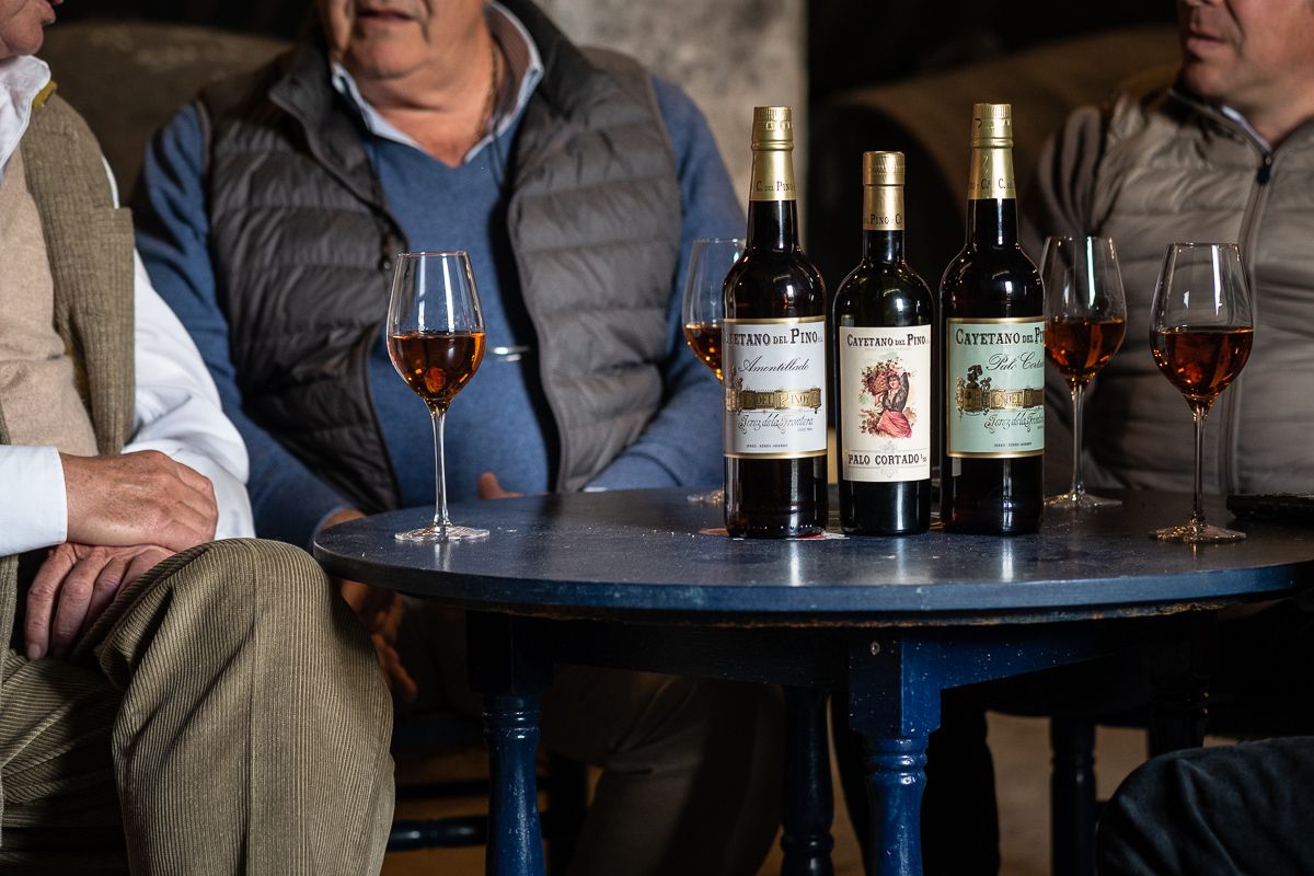 Sus primos José Enrique Otte Del Pino y Santiago del Pino Maldonado, también propietarios, se encuentran con él, que junto a Miguel Ángel Otte del Pino y la rama familiar de los Del Pino Benjumeda, forman la cuarta generación de esta bodega. Por la puerta de entrada a una de las naves de la bodega, una luz asoma iluminando una pequeña mesa sobre la que se sientan. "Estos son nuestros vinos", dice Gerardo, que presume de etiqueta. Su primo José Enrique le ayuda: "Tenemos una colección de hasta 600 etiquetas, el 99% del siglo pasado", recalca. "Hemos querido diferenciarnos y hemos sacado algunas de esos diseños antiguos en nuestras botellas, con todos los requerimientos de hoy".