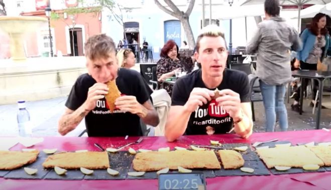 Un total de 48 minutos necesitaron los citados youtubers para acabar con el que han catalogado como el cachopo más grande de España.