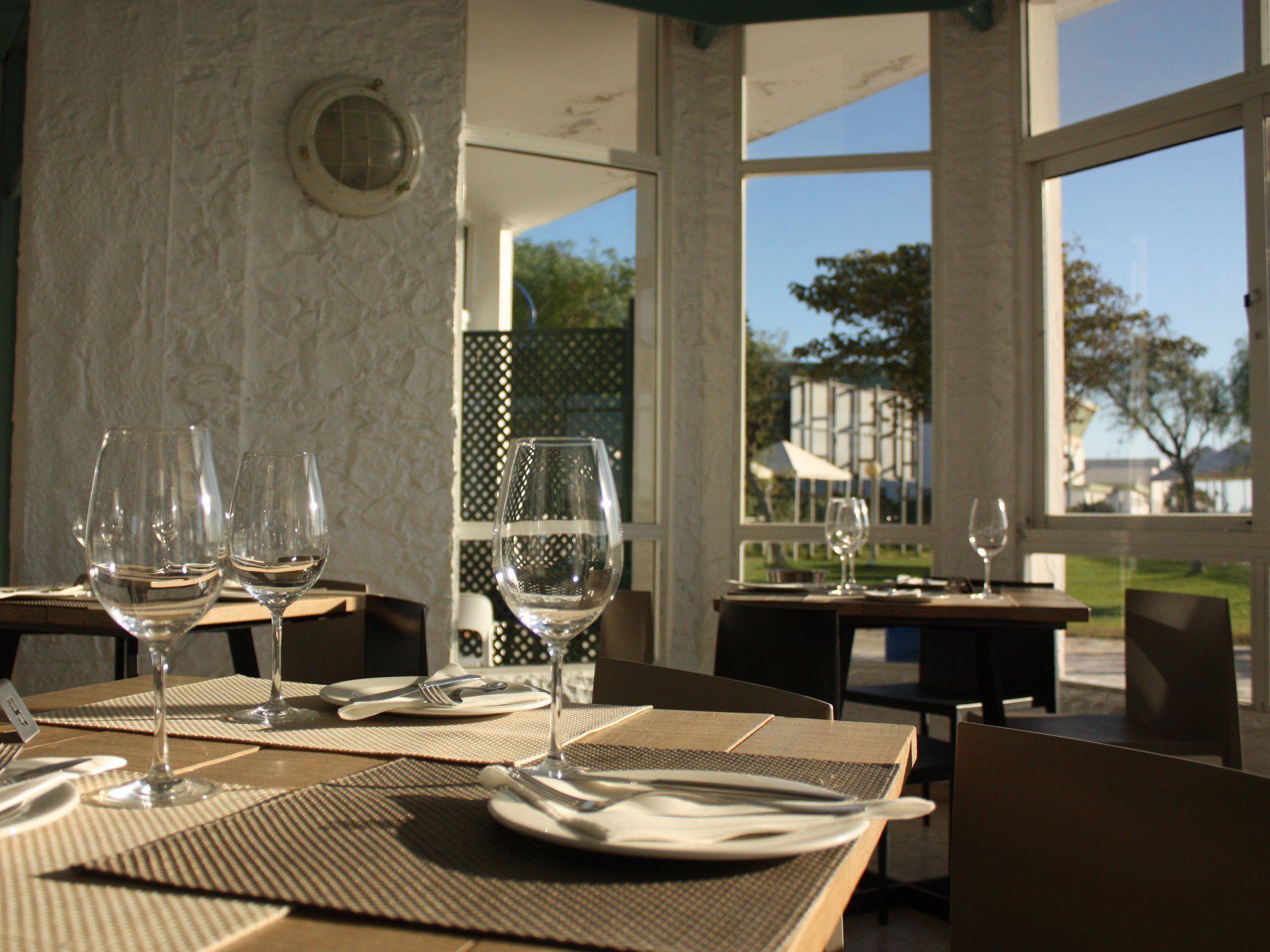 En general, los alrededores del edificio del club necesitan una reforma. El inmueble está situado en el mejor sitio de la desembocadura del río, presidiendo la proa de la genuina milla de oro sanluqueña de los Bigote, El Mirador de Doñana, Joselito Huerta, El Poma… En un lateral hay un césped muy bien cuidado con pequeñas carpitas, pero contrasta con una especie de almacén cutre de embarcaciones que separa el club de la misma orilla y que estropea la vista privilegiada desde la terraza del restaurante.