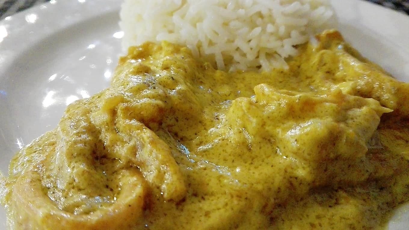 Calamares al curry con arroz.