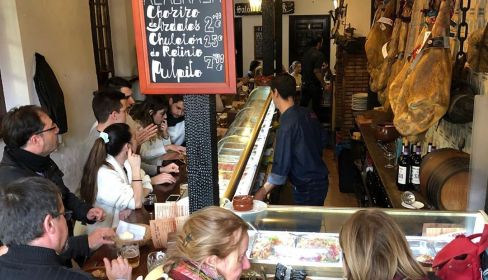 Especiales eran sus tapas de pulpo o sus carnes. Porque mantenía una brasa en la barra a la vista del público. El problema principal es que apenas tenía terraza. Es un lugar continuamente abarrotado, sin espacio posible entre comensales. El consumo se realiza en barra y junto a ella, en unas mesas altas en el mismo pasillo, y en un salón interior ubicado encima de la citada barra. Un local muy aprovechado y que no puede aguantar esta crisis. Daba empleo a más de una docena de personas, que en pocos metros trabajaban con tesón para controlar el innumerable ritmo de comandas.