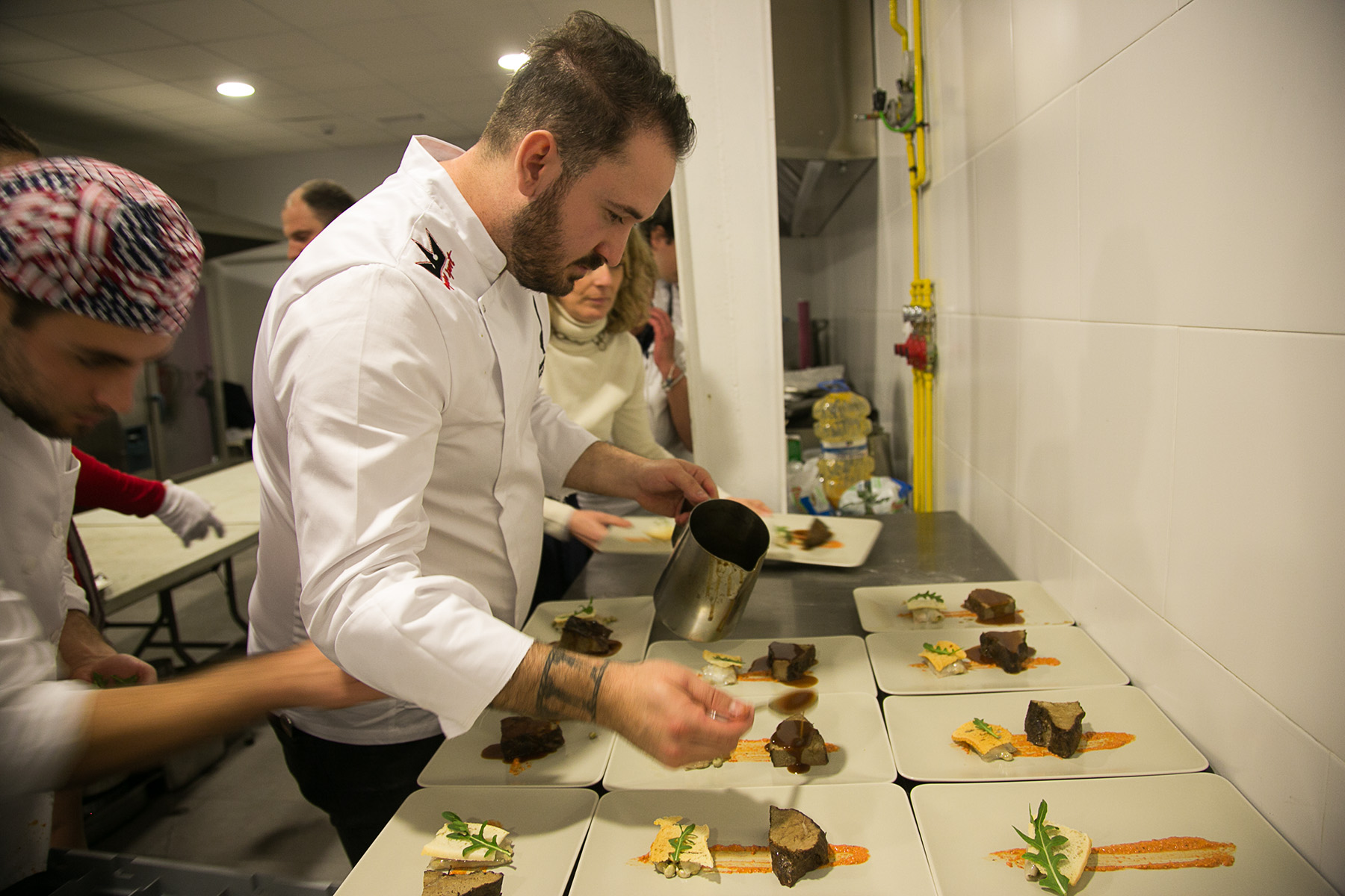 'Flamencook. Cocina con compás'. Cocineros: Ciprian Iordan, Israel Ramos y Antonio Caramé; Idea original: Living Town (Carlos Gutiérrez y José Luis Nieto); Creatividad: Daniel Diosdado (diseño e ilustraciones), Paco Sánchez Múgica (selección de los artistas y textos) y Julio de Vega (selección de artistas); Bodega Los Gigantes (González Byass), 20 de febrero de 2016.