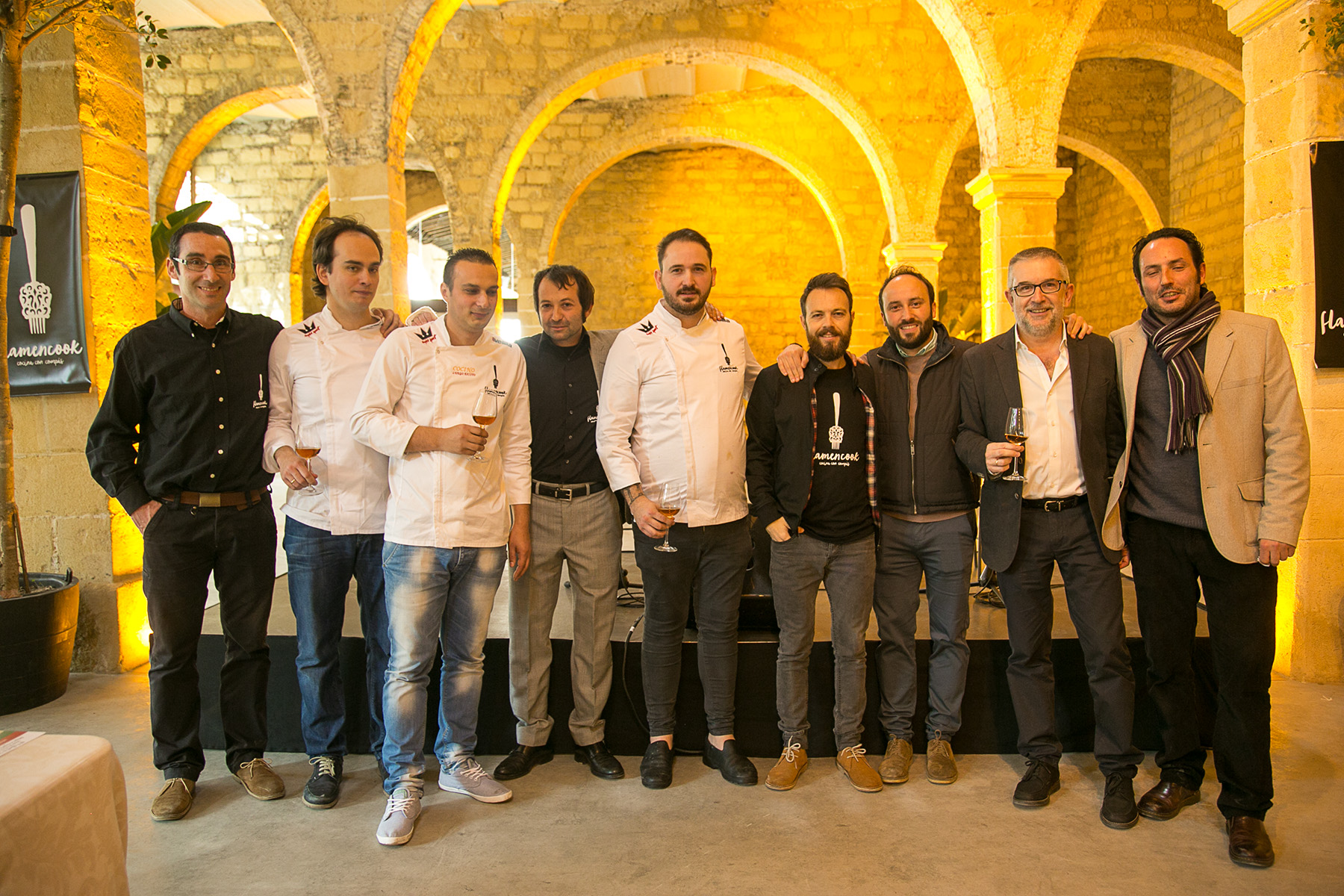 La experiencia se antojaba única y a fe que así fue. Había muchas ganas de vivir y conocer qué deparaba Flamencook. Cocina con compás, la primera incursión gastronómica en el Festival de Jerez tras 19 ediciones, y el resultado no pudo ser mejor si nos atenemos a los comentarios positivos y a las caras de satisfacción de los 120 comensales que asistieron a esta primera cita en la bodega Los Gigantes de González Byass. Todo un éxito gracias a José Luis Nieto y Carlos Gutiérrez, de la empresa Living Town, infatigables en su deseo de que el proyecto saliera adelante tras sortear multitud de vicisitudes.