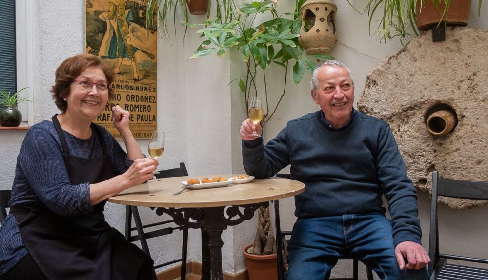 Domingo y Ana durante el encuentro con lavozdelsur.es. FOTO: MANU GARCÍA.Con tan sólo seis años de existencia, el establecimiento ya goza de una distinguida popularidad y el matrimonio disfruta dando lo mejor de sí. Eso pese a que la ansiada jubilación de Domingo, el objetivo por el cual se decidió a emprender el negocio, se acerca. "Con cincuenta y tantos años uno no está incapacitado para trabajar, es lo que hay que hacer", comenta orgulloso sobre una iniciativa que les cambió la vida. A ellos y a sus comensales, que brindan al otro lado de la barra con un fino. Uno de ellos pide "bacalao al brandy". Ana cruza la puerta y vuelve a la cocina. En el Tabanco Mariñíguez todo es al momento, fresco y casero.